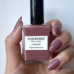 Apply one thin coat of your chosen Nailberry polish, using our wide, tapered brush to flawlessly coat your nail from base to tip. Work on both hands to allow each layer to dry.