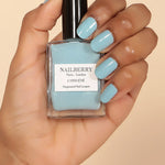 Whoever said blues are brooding hasn't met this powder-soft pastel. Fresh, jaunty and fun, one glance of it brings to mind sophisticated summertime gatherings and blissful sea vistas. Pair with picnic, wedding or party wear for pure polish perfection.